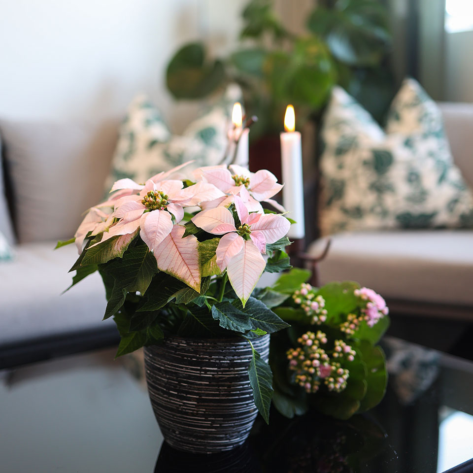 En Höststjärna är genetiskt sätt identisk med en Julstjärna. Skillnaden ligger i färgerna och i vilken period som vi njuter av dem på fönsterbrädan.