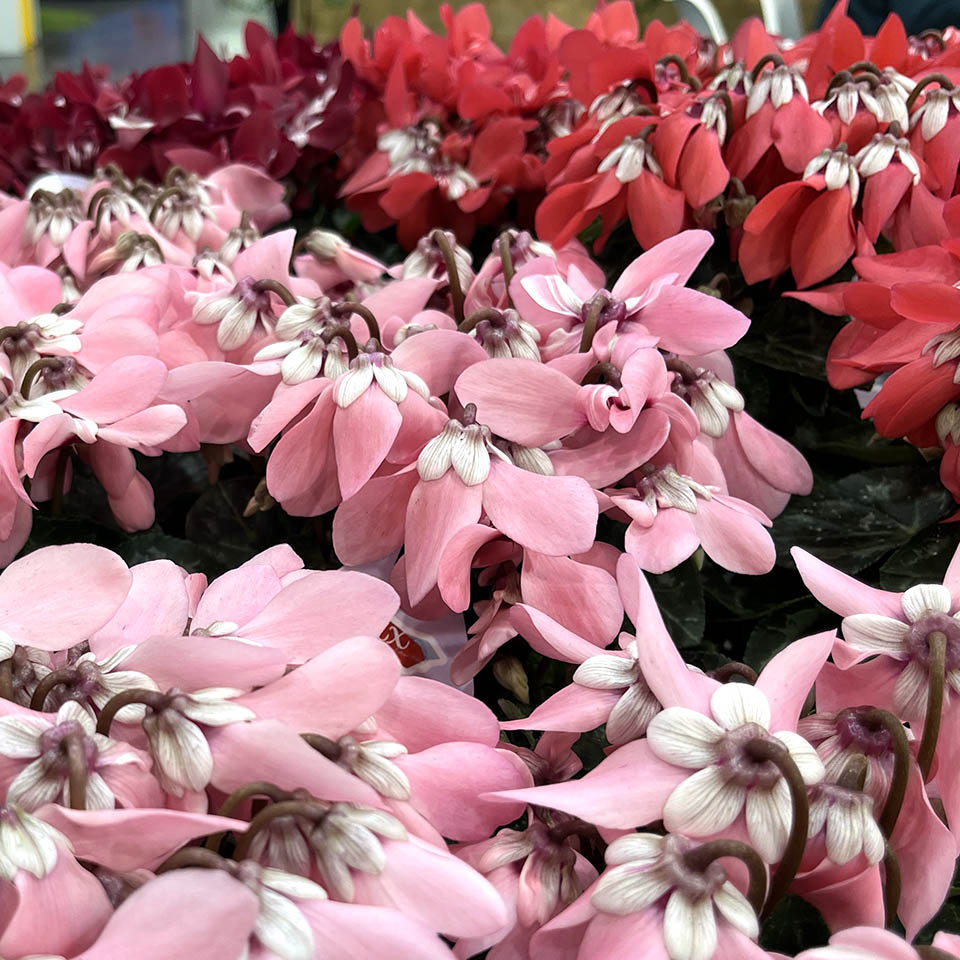 Förädlarna har lyckats få fram en Minicyklamen som har vissa drag från sin stora kusin 'Fleur en Vogue'. Djix har begåvats med benvita foderblad som står fint i kontrast med blommans färg. Detta ger blommorna sin extra charm. Du väljer mellan ttre olika färger, rosa, korallröd och vinröd.