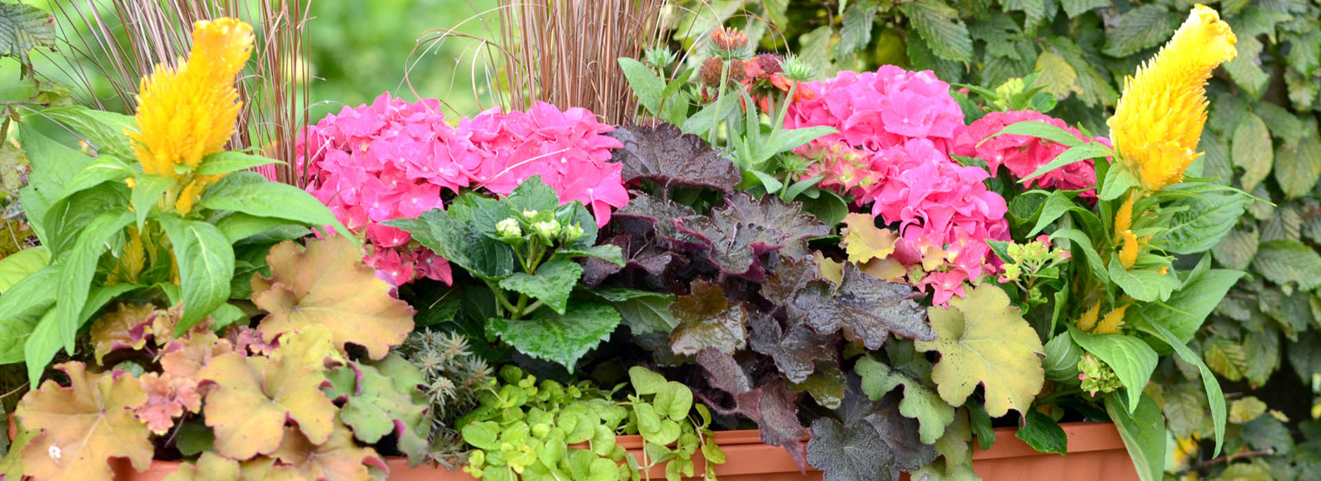 Plymört, Heuchera Hortensia, Penningblad, Huechera, Rudbeckia, Hortensia och Plymört