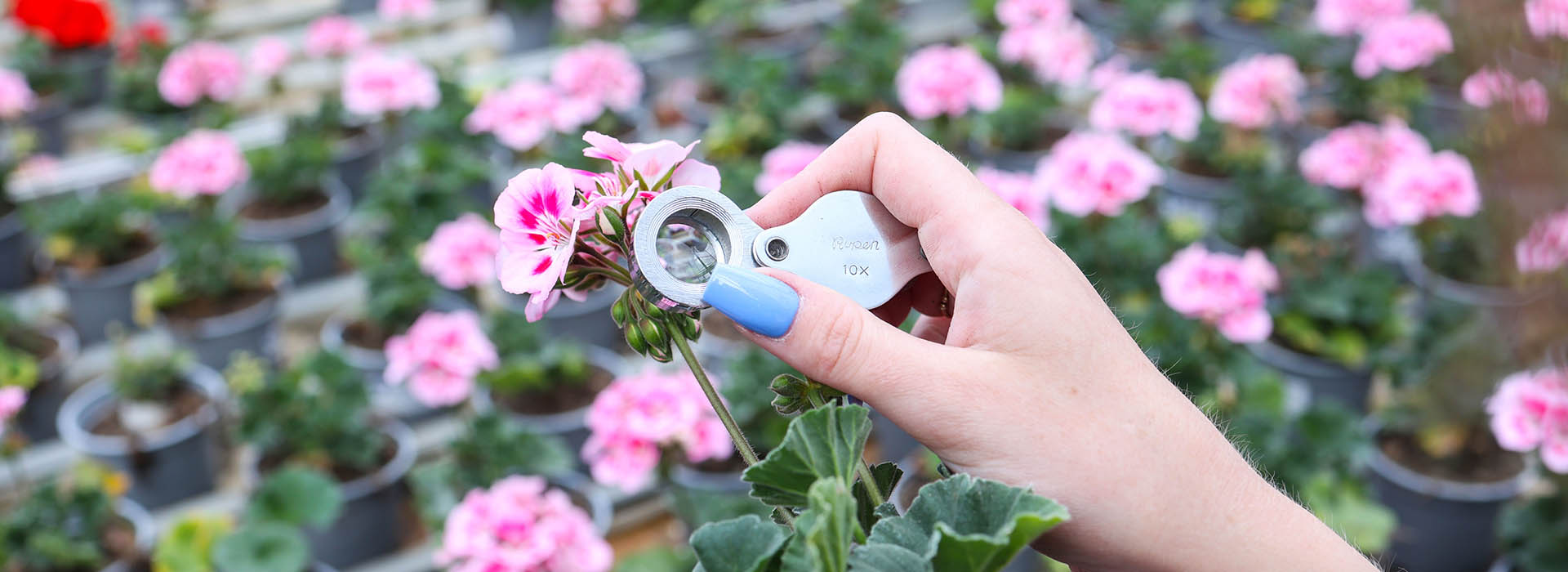 Hur mår blommorna - finns det någon där? Sällsynt med inkräktare på Pelargonens blommor - men det är viktigt att förebygga och finna dem i ett tidigt stadium för att kunna sätta in ett biologiskt växtskydd.