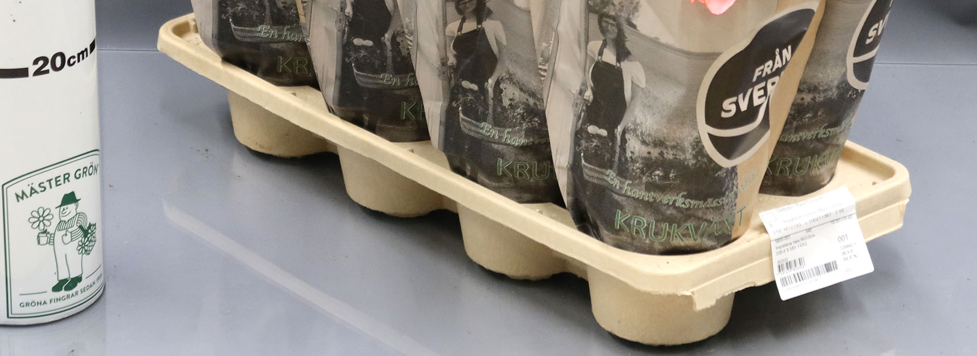 Under de senaste 10 åren har vi provodlat i olika nya typer av krukor som inte tillverkats av plast. Ingen av dem har ännu kunnat nå ut på marknaden eftersom de inte fullt ut kunnat ersätta den konsumentkvalitet som en plastkruka ger produkten. Men vi ger inte upp. 2025-26 inleder vi tester på ytterligare modeller av krukor som är fria från plast. Krukor som tillverkas av träfiber kan vara en lösning för framtiden, men tillverkarna har en stor utmaning och långt utvecklingsarbete kvar.