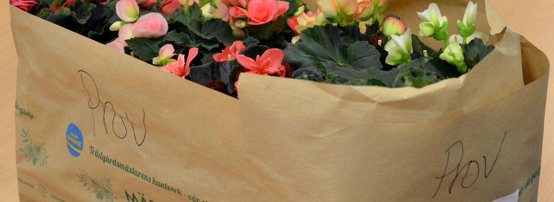 För skyddspåsar som omsluter krukväxterna övergår vi allt mer till påsar tillverkat av papper.