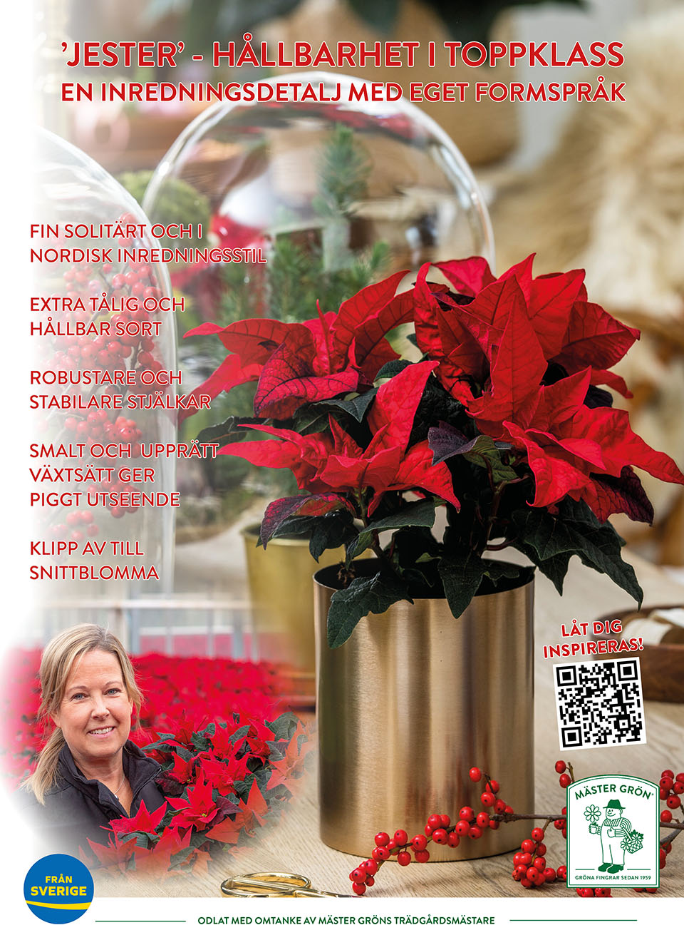 I årtionden har Julstjärnan varit en symbol för vårt svenska julfirande och festligheter inför. Den röda färgen har ett stort signalvärde och markerar tydligt julens ankomst. Formen som bildas av högbladen är spännande och 'Jester's är än mer intressant och väcker uppmärksamhet som ingen annan.