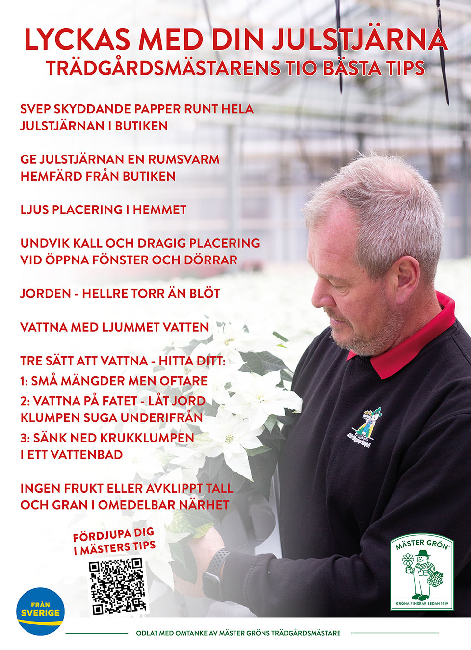 Svenska trädgårdsmästare är stolta för sitt hantverk och känner väl till förhållanden för hur svenska konsumenter vill ha sin produkt. De anpassar sin odling till att uppnå en fin kvalitet, men också för att Julstjärnan skall tåla den omställning som det innebär med en flytt hem till din fönsterbräda.