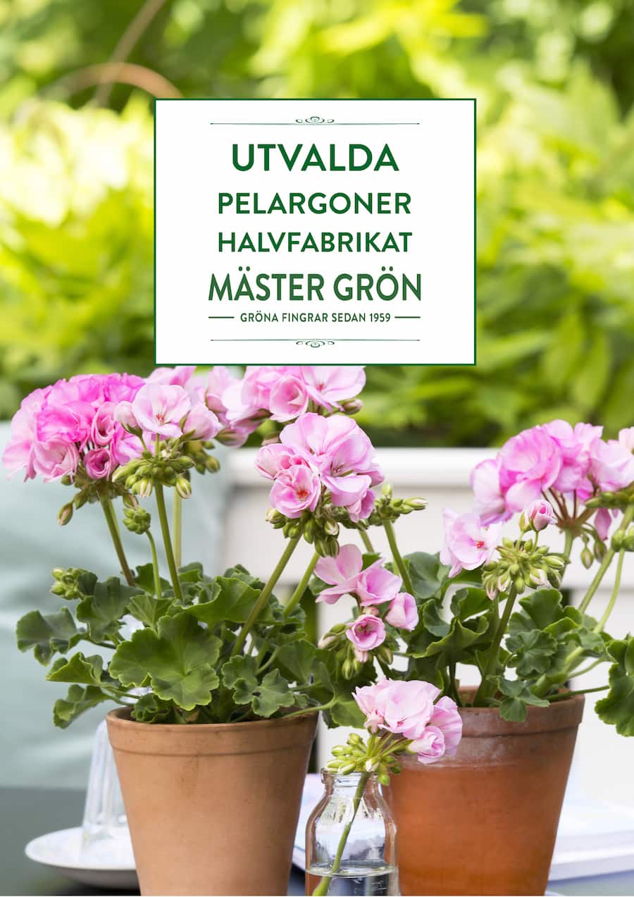 Med god hjälp av våra trädgårdsmästares Pelargoner får du möjlighet att finna nya favoriter och bredda din samling av återkommande Pelargoner. Här presenterar vi ett brett sortiment med ett antal odlingsvärda Pelargoner från de olika sortgrupperna. Du kan finna allt från dem med olikfärgade blad, med stjärnformade blommor och sådana som har fyllda blommor till dem som är så storväxta och kraftiga att de kan spaljeras.
