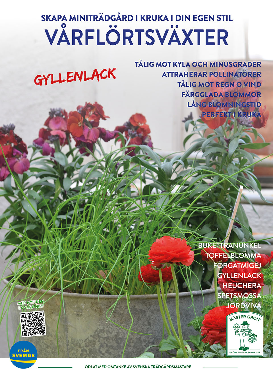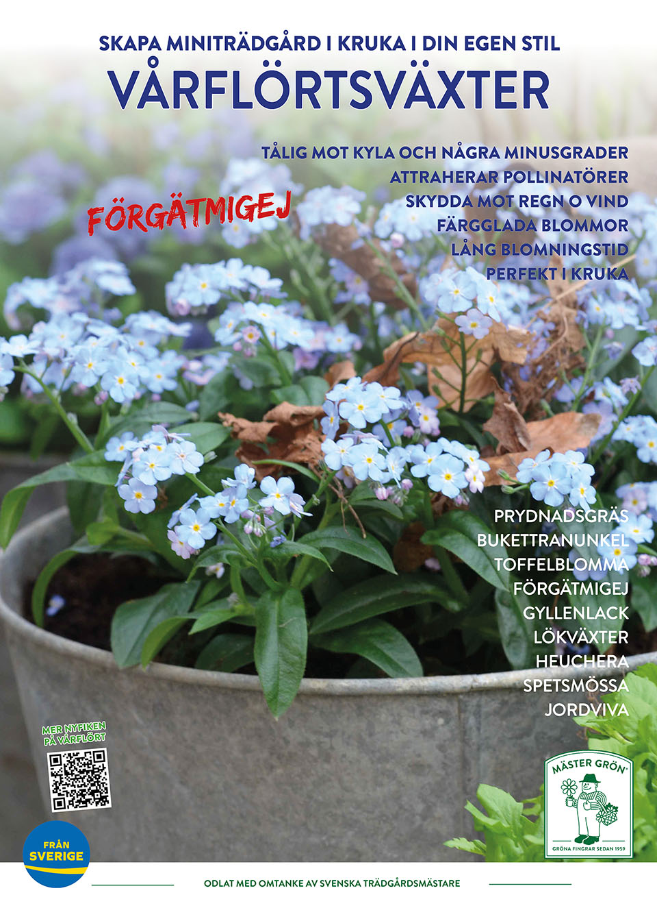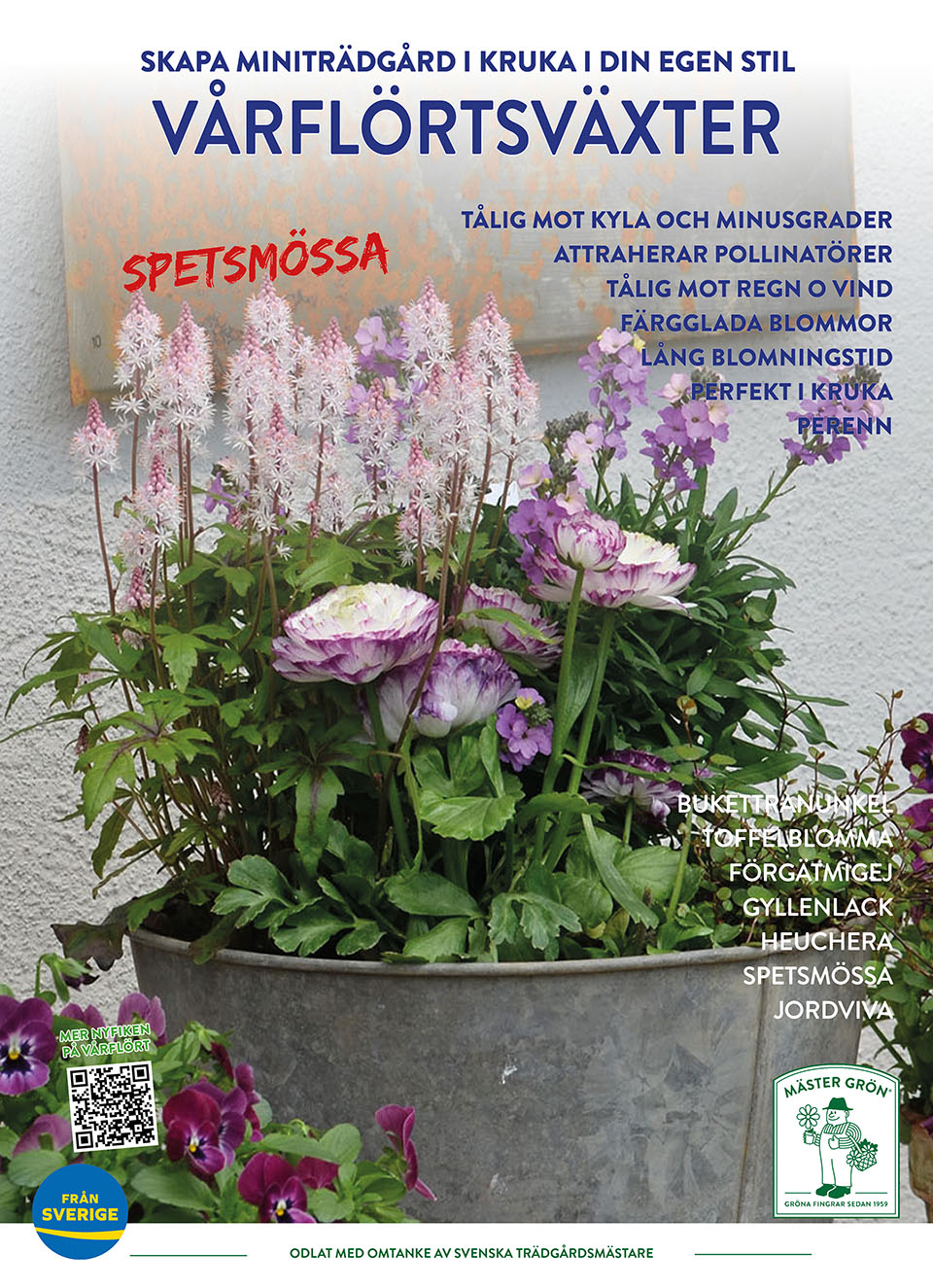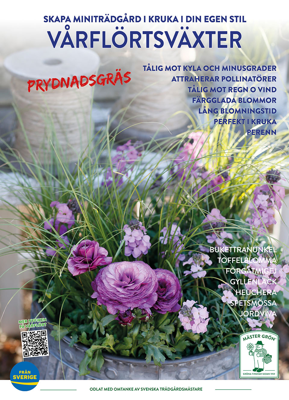 Här i tema Vårflört finns ett bredare utbud med något större växter, vilka du kan plantera tillsammans med dina Penséer. Några Penséer och en eller två Vårflörtsväxter kombinerade med något fint Prydnadsgräs räcker för att skapa en miniträdgård i din egen personliga stil.