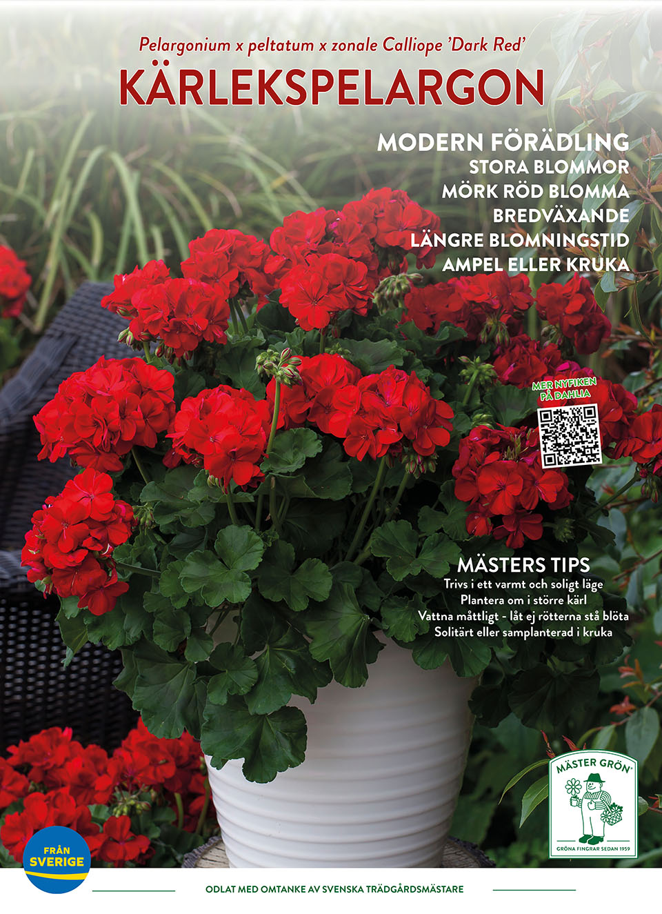 Kärleken är röd och därmed blir den blodröda Pelargon en kärleksförklaring. Sorten är fin både i kruka och ampel vilket gör den mycket användbar även som samplanteringsväxt.