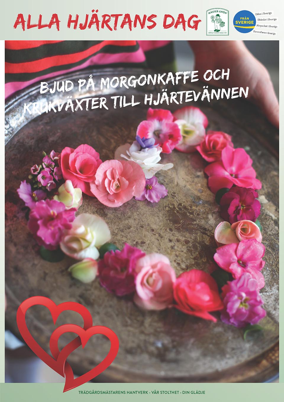 Uppvakta din hjärtevän med kaffe ett ett fat uppdukat med avklippta blommor från dina krukväxter.